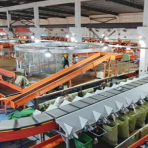 由主驱动带式输送机和载有小型带式输送机的台车(简称“小车”)联接在一起的一种新型快件包裹自动读码输送分拣系统,主要应用在各类快递、电商企业操作场地,对快件进行输送分拣。